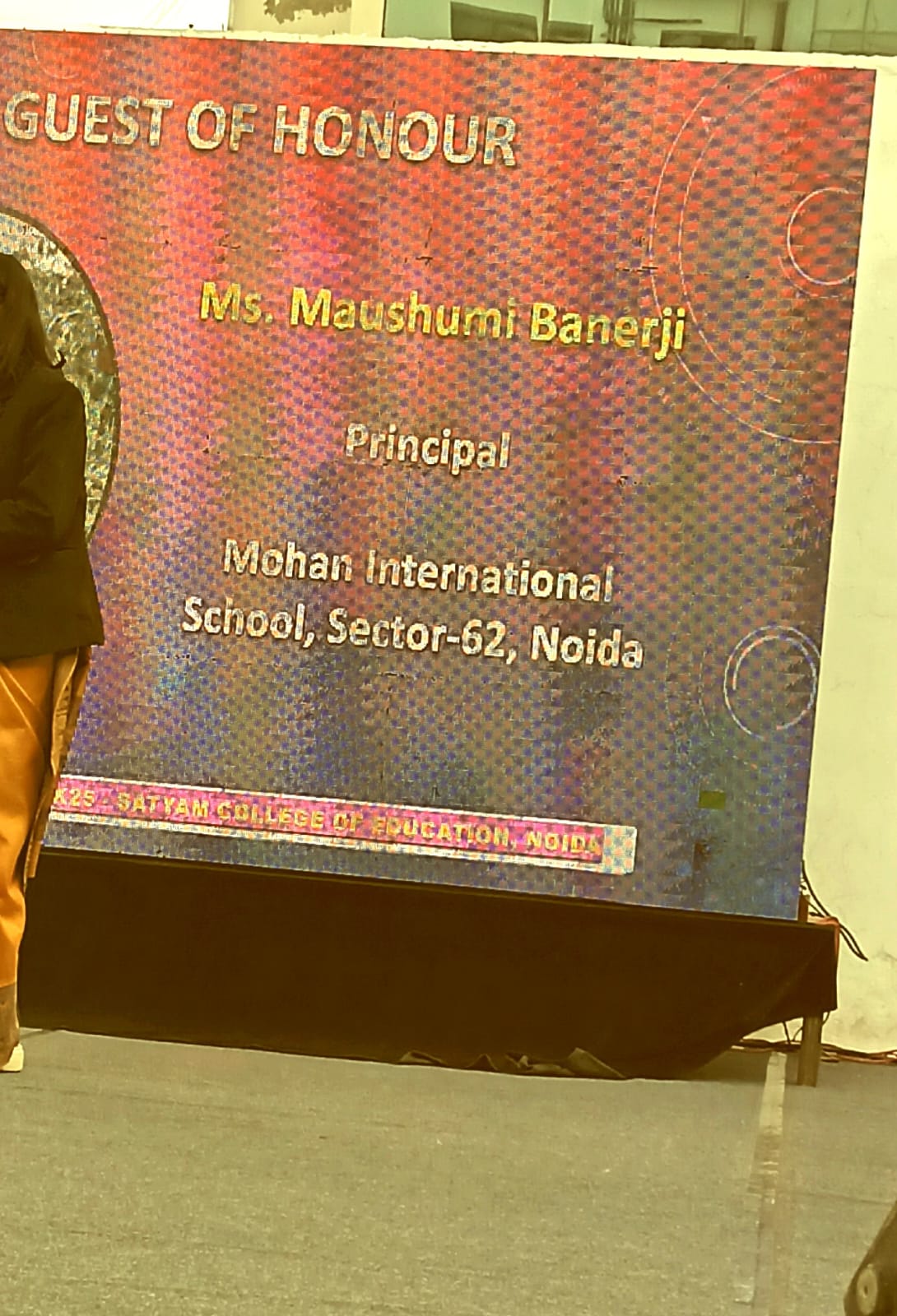 Ms Maushumi Banerji principal of Mohan International school was felicitated as guest of honour at Satyam college of education for annual fest 'NAVYA'.